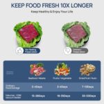 【10 Modes &Variable Modes】-Unique liquid sealing mode -Effectively vacuum seals any liquid or liquid-rich food such as soups, stews and purees. Sealing Choice (Dry/Moist /Liquid ), Vacuum Pressure (Strong/Soft), Vac & Seal, Manual Seal, Container, Marinate, Pulse. Use dry / wet / liquid mode to adapt to different food state on the vacuum preservation, to achieve the best preservation effect. Pulse mode-for fragile foods, you can stop the vacuum at any time depending on the condition of the food.