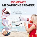 VERSATILE: This portable megaphone with siren is amazingly lightweight and has been fitted with an advantageous conveying strap. Our megaphone bullhorn speaker works with just 4 D batteries. Bring it with you to your next exceptional occasion
